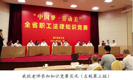 日前,我校工会选派教师代表省部属企事业工会参加“中国梦·劳动美”全省职工法律知识竞赛,荣获一等奖。省总工会副主席李锦平等领导为获奖者颁奖。 为普及法律知识,提高企事业单位员工维护自身权益的意识,浙江省总工会举办了此次法律知识竞赛,全省有11个市级和8个行业工会,共19支代表队参赛。竞赛内容包括《宪法》、《中华人民共和国劳动法》、《工会法》和十八届四中全会学习问答等。 我校工会积极开展普法教育,通过组织知识竞赛、演讲赛等活动,选拔姚建锋、陈斯洁、陈雅3位老师参加全省职工法律知识竞赛,他们冒着酷暑,放弃暑假休息,经过近2个月的认真准备,比赛中表现出色,在复赛、决赛中一路过关斩将,充分展示了我校教职工积极向上的精神面貌和奋勇争先的风采。 |