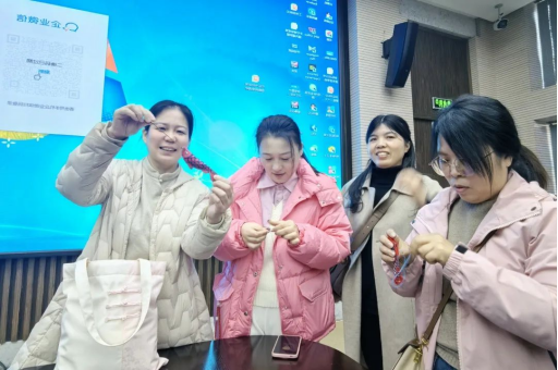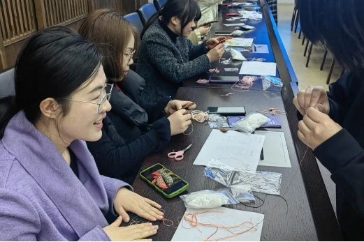 杭州工艺美术博物馆藏有丰富多彩的工美种类和巧夺天工的工美作品。活动当天,女教职工们在参观琳琅满目的工艺作品后,校工会特邀请了杭绣技艺非遗代表性传承人金家虹老师带领大家一起制作“年年有余”手工,切身感受非遗文化的非凡魅力。