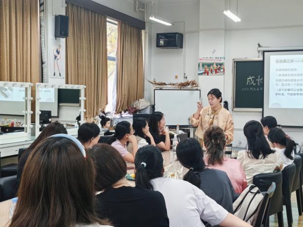 金秋九月,师风馥郁。为庆祝我国第41个教师节,丰富校园文化生活,提升教职工形象气质,传播悦己理念,9月10日上午,学校工会在绿韵楼3102教室举办“妆容艺术”花样分享课,活动吸引了众多教职工踊跃参与,共同体验化妆艺术带来的焕新与自信。